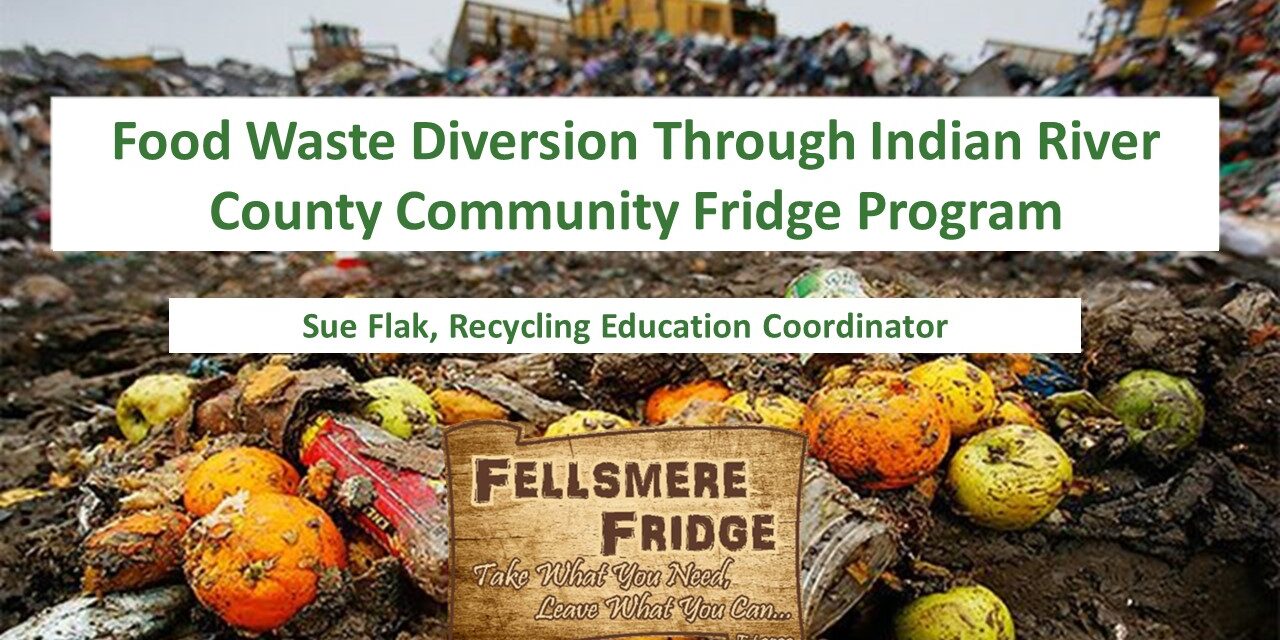 Sue Flak, Recycling Education and Marketing Coordinator for Indian River County, presented the community fridge program during the webinar and accepted the prestigious award. The Fellsmere Fridge is part of a new local pilot program called the Community Fridge Program, here a refrigerator is placed within a community and is used to share food at the neighborhood level. The motto of the program is, “Take what you need, Leave what you can.” The purpose of the program is to reduce food waste, build stronger communities, encourage local artists, and promote equal access to healthy food.